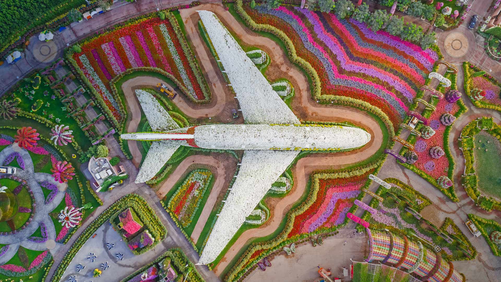 Dubai Miracle Garden, United Arab Emirates (© Amazing Aerial/Offset) - Bing Wallpaper on April 18, 2019
