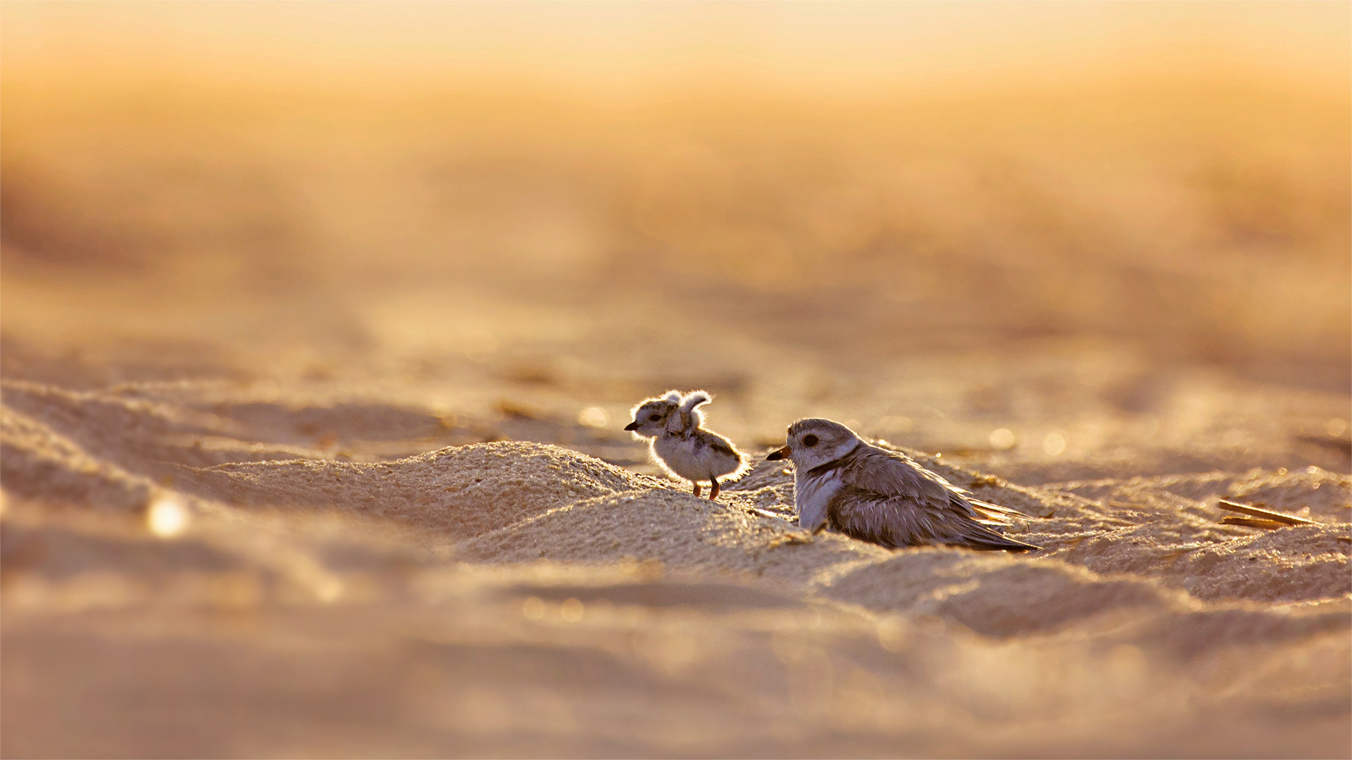 Piping plover and its chick on Jones Beach Island, New York (© Vicki Jauron/Getty Images) - Bing Wallpaper on May 12, 2019
