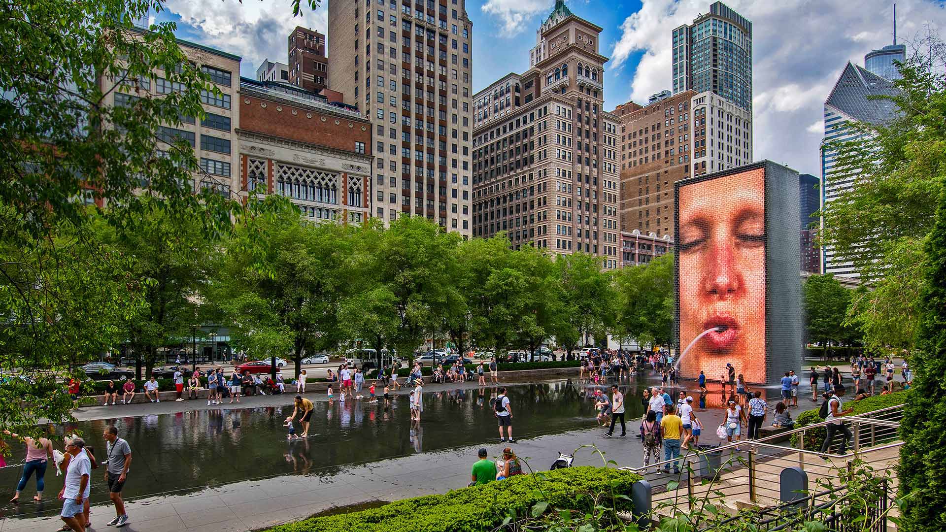 Crown Fountain by Catalan artist Jaume Plensa, Millennium Park, Chicago (© imageBROKER/Alamy) - Bing Wallpaper on June 9, 2019