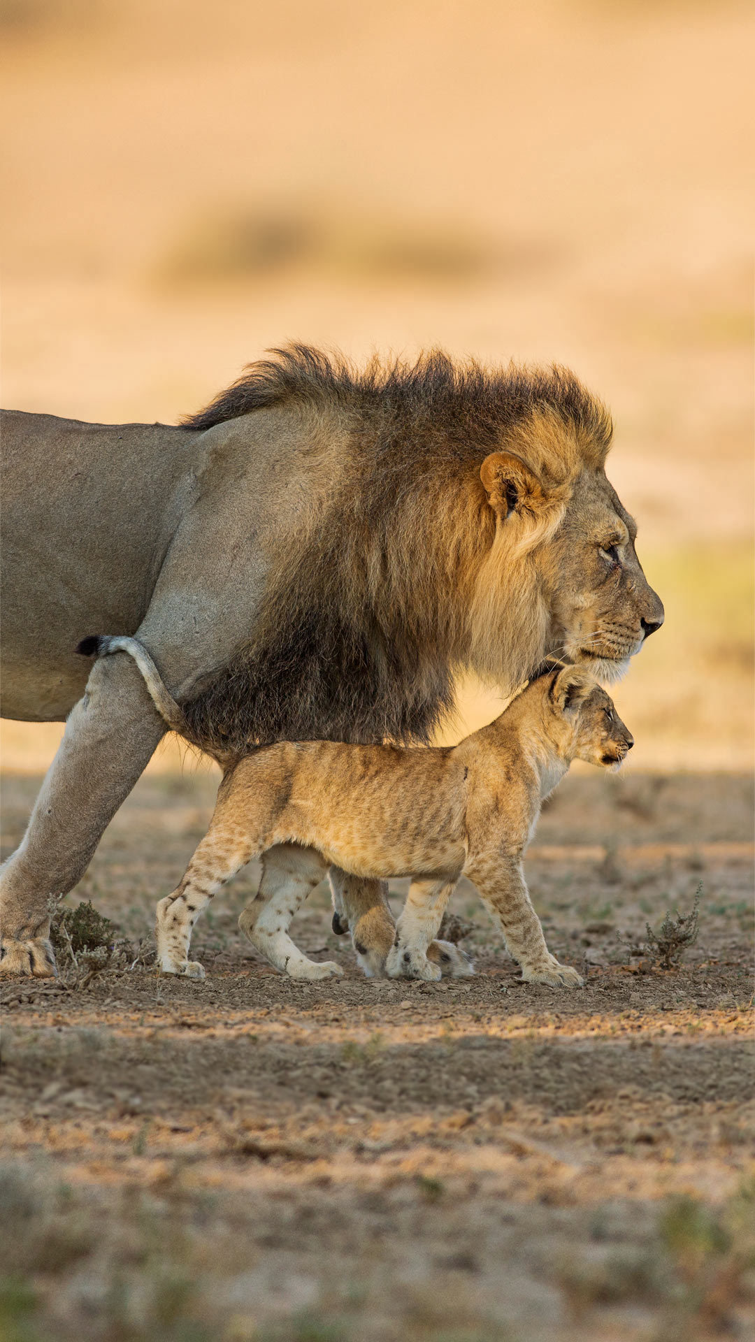 Male African lion and cub in Kgalagadi Transfrontier Park in southern Africa (© Richard Du Toit/Minden Pictures) - Bing Wallpaper on June 16, 2019