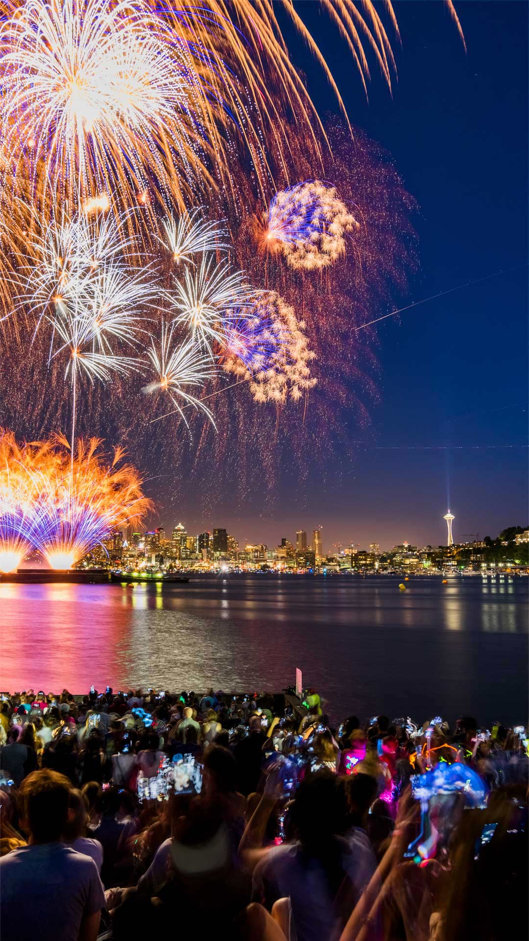 July 4th fireworks over Lake Union, Seattle (© Onest Mistic/Getty Images) - Bing Wallpaper on July 4, 2019