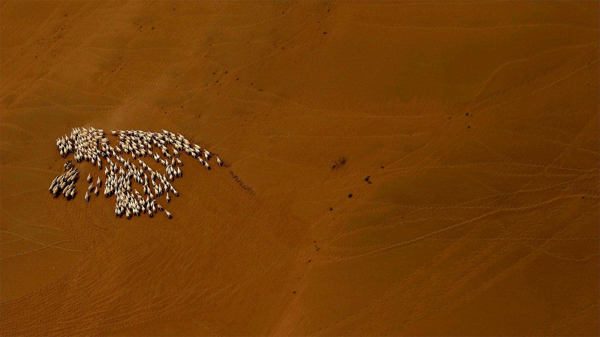 Sheep flock in the Gobi Desert (© Patrick Baz/Getty Images) - Bing Wallpaper on July 17, 2019