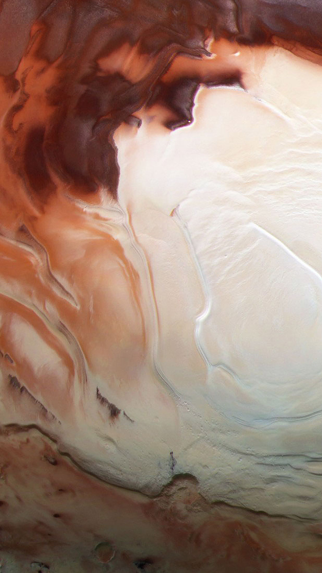 Mars Express image of the icy cap at Mars’ south pole (© ESA/DLR/FU Berlin/Bill Dunford) - Bing Wallpaper on August 13, 2019