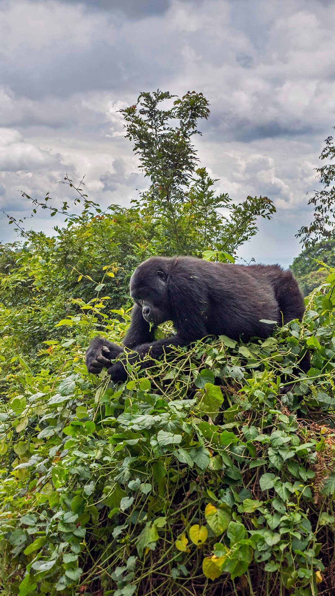 A mountain gorilla eating in a tree in the Bwindi Impenetrable National Park, Uganda (© Robert Haasmann/Minden Pictures) - Bing Wallpaper on September 24, 2019