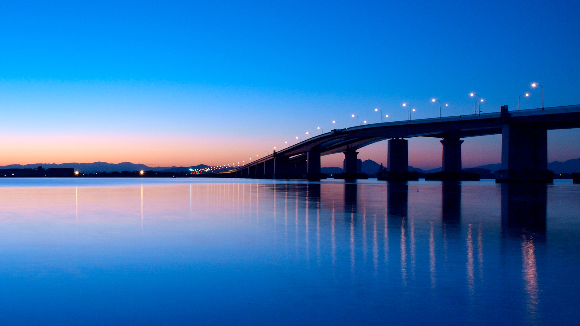「夜明けの琵琶湖大橋」 滋賀県 (© Hiroshi Kusumoto/EyeEm/Getty Images) - Bing Wallpaper on September 26, 2019