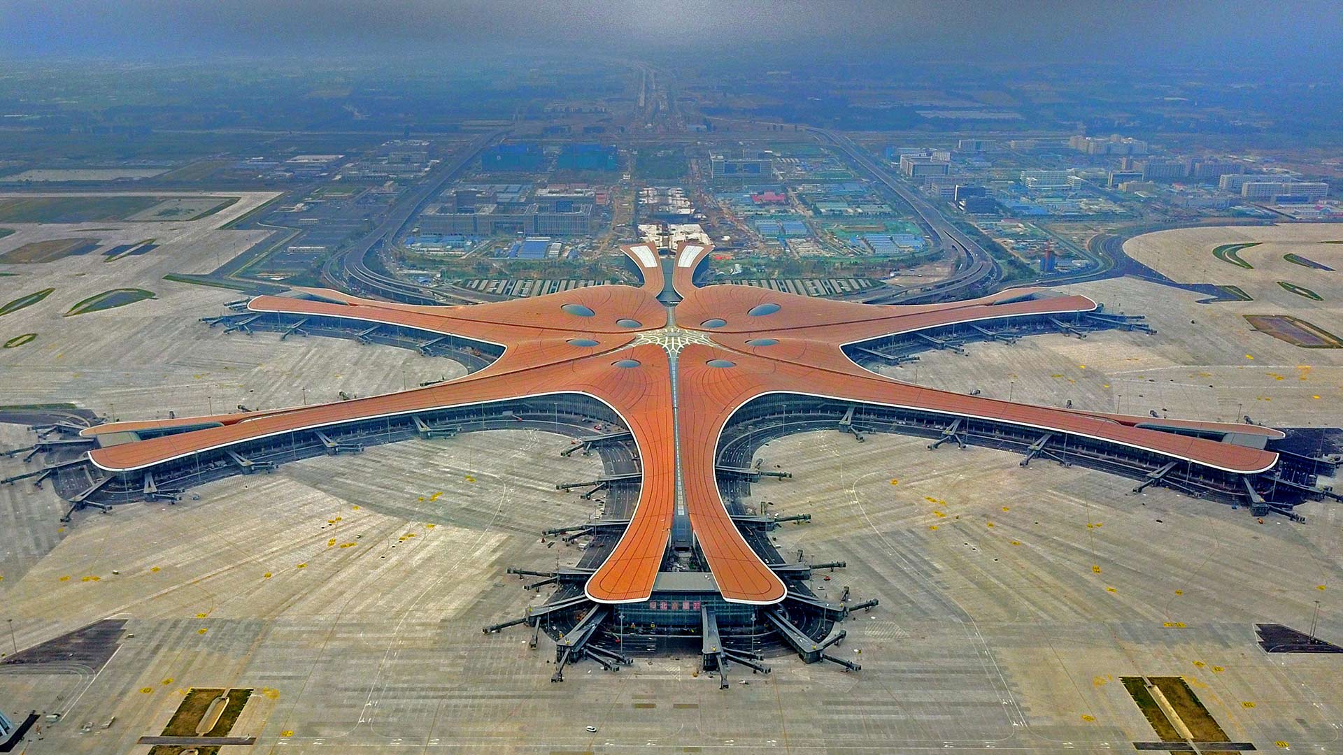 An aerial view of Beijing Daxing International Airport, China (© Xinhua/Alamy) - Bing Wallpaper on September 30, 2019