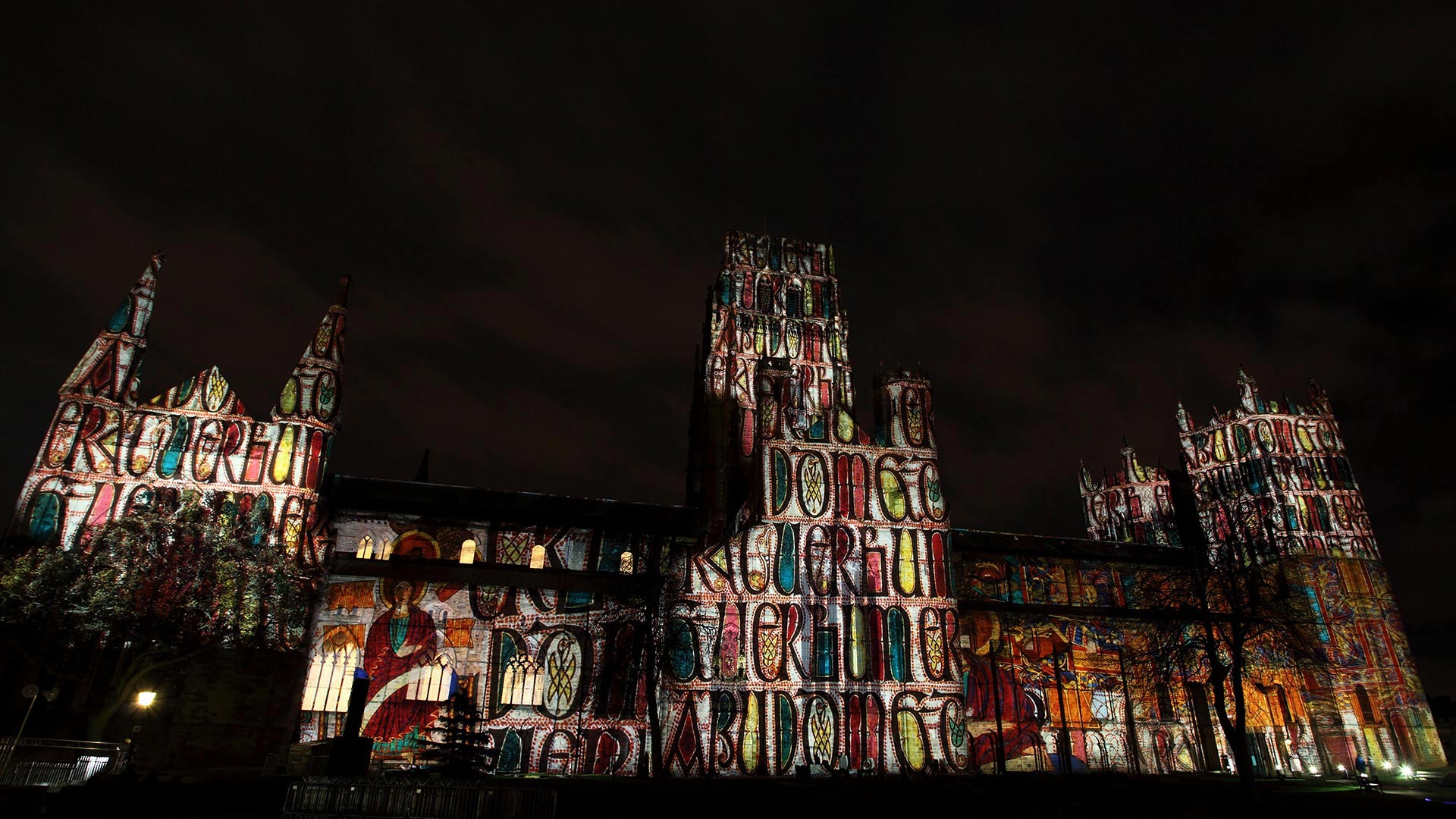 The 'Crown of Light' installation is projected onto Durham Cathedral during the 2013 Lumiere Durham festival in England (© Stuart Forster/Alamy) - Bing Wallpaper on November 14, 2019