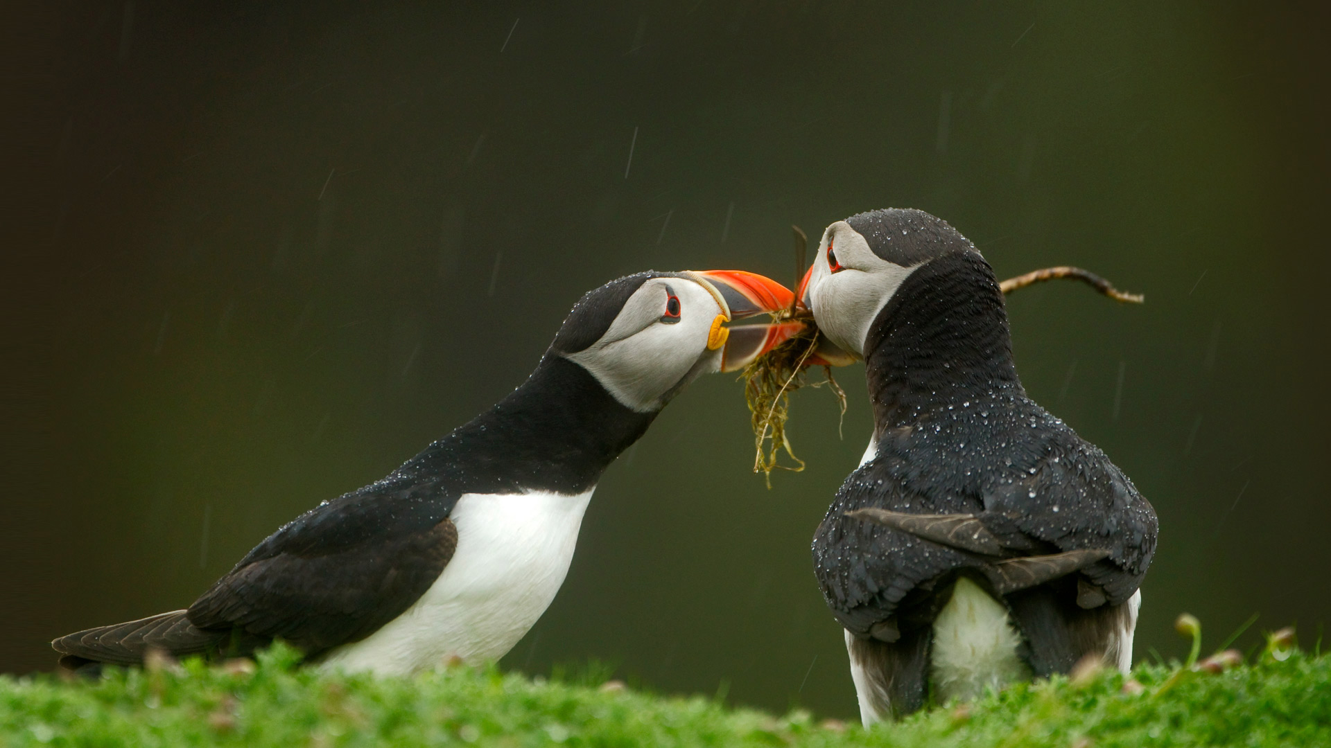 Male Atlantic puffin gives his mate nesting material, Skomer Island, Wales (© Danny Green/Minden Pictures) - Bing Wallpaper on December 3, 2019