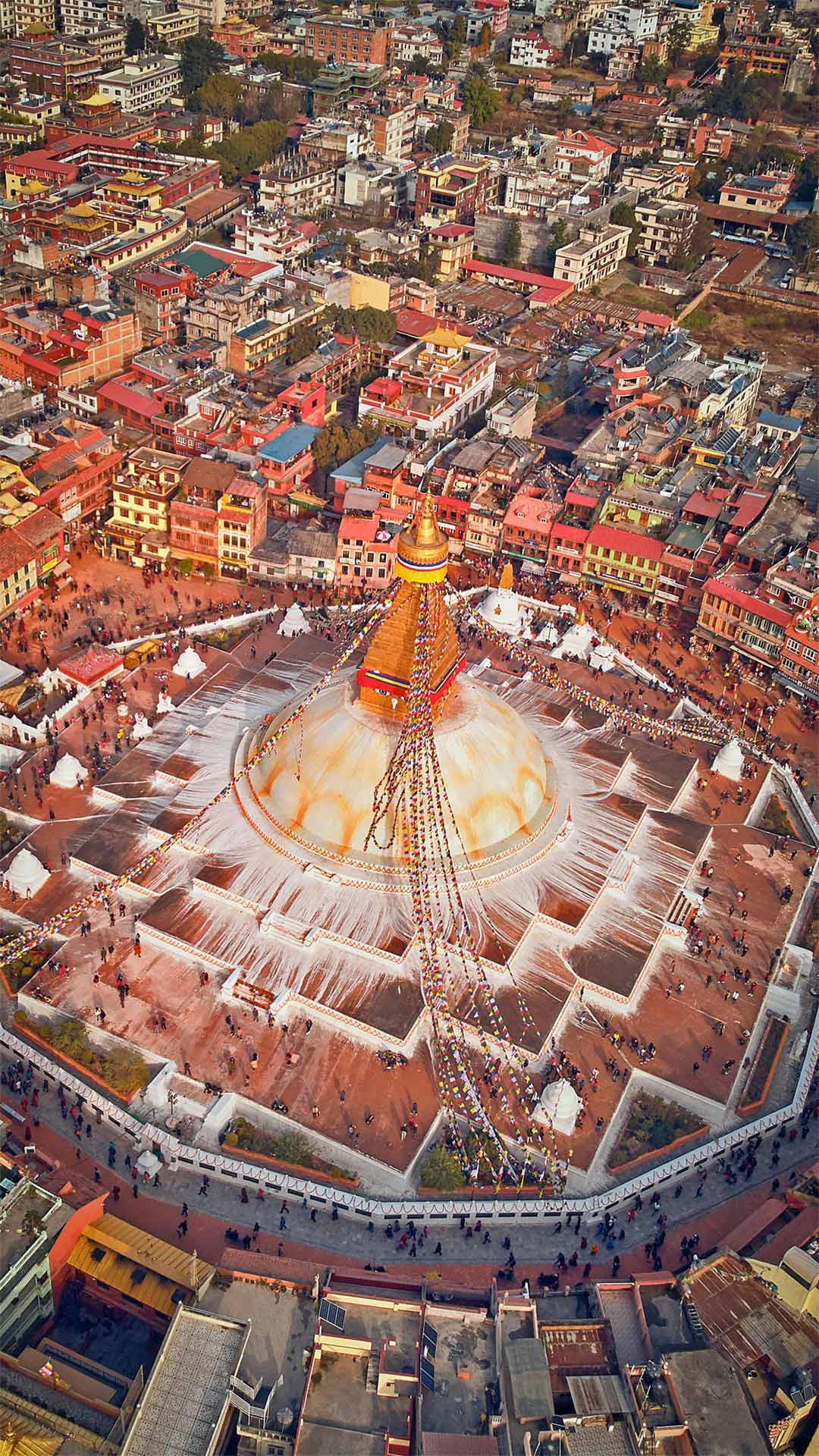 Aerial view of Boudhanath stupa in Kathmandu, Nepal (© Maksim Semin/Shutterstock) - Bing Wallpaper on January 15, 2020