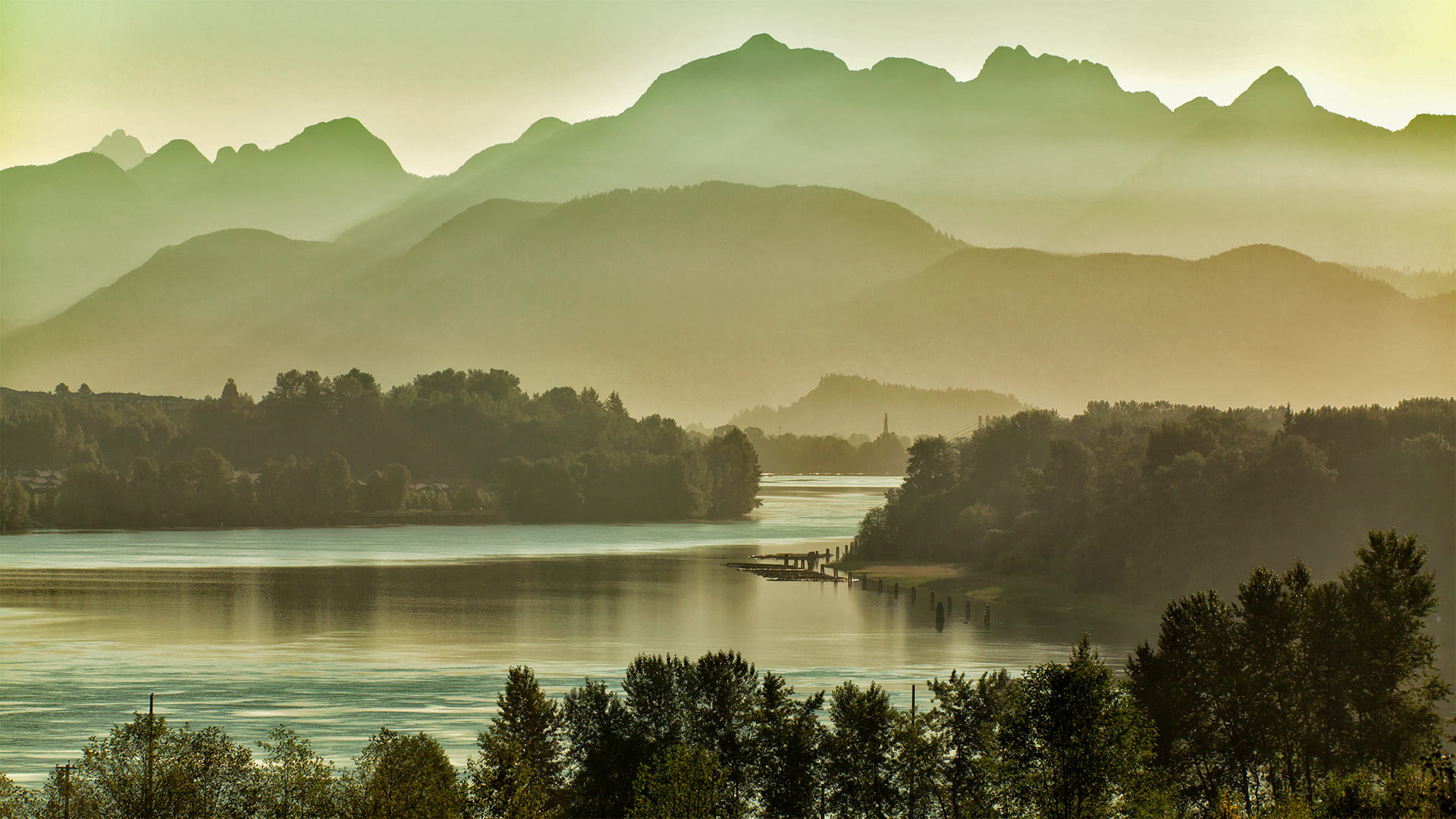 The Fraser River, east of Vancouver, British Columbia, Canada, with the Golden Ears mountains (© LeonU/Getty Images) - Bing Wallpaper on September 27, 2020