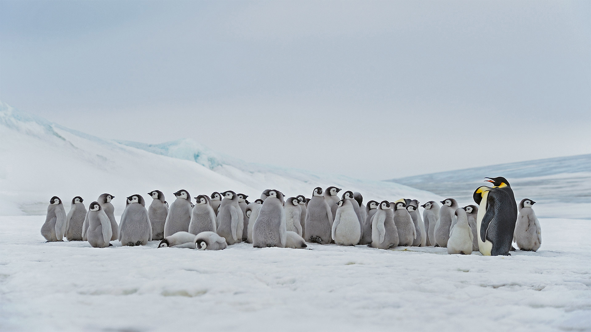 Emperor penguin adults and chicks at the Snow Hill Island rookery, Antarctica (© Martin Ruegner/Getty Images) - Bing Wallpaper on October 5, 2020