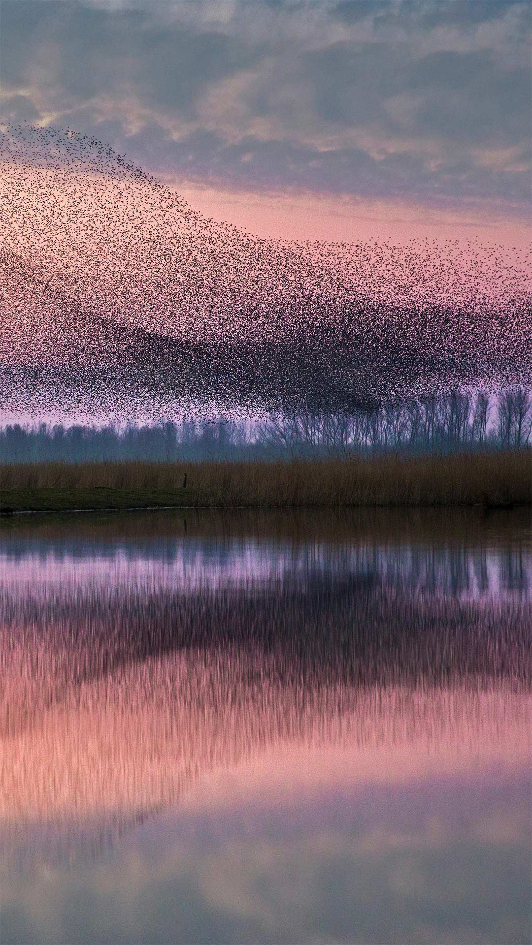 Starlings flock over Lauwersmeer National Park, Netherlands (© Frans Lemmens/Alamy) - Bing Wallpaper on October 22, 2020