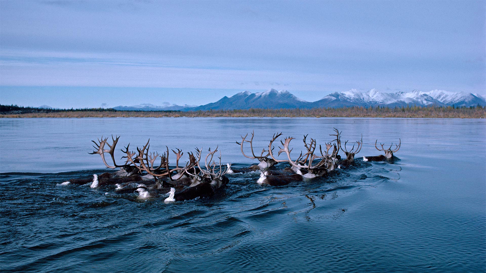 Caribou swimming across Alaska's Kobuk River during fall migration (© Michio Hoshino/Minden Pictures) - Bing Wallpaper on November 4, 2020