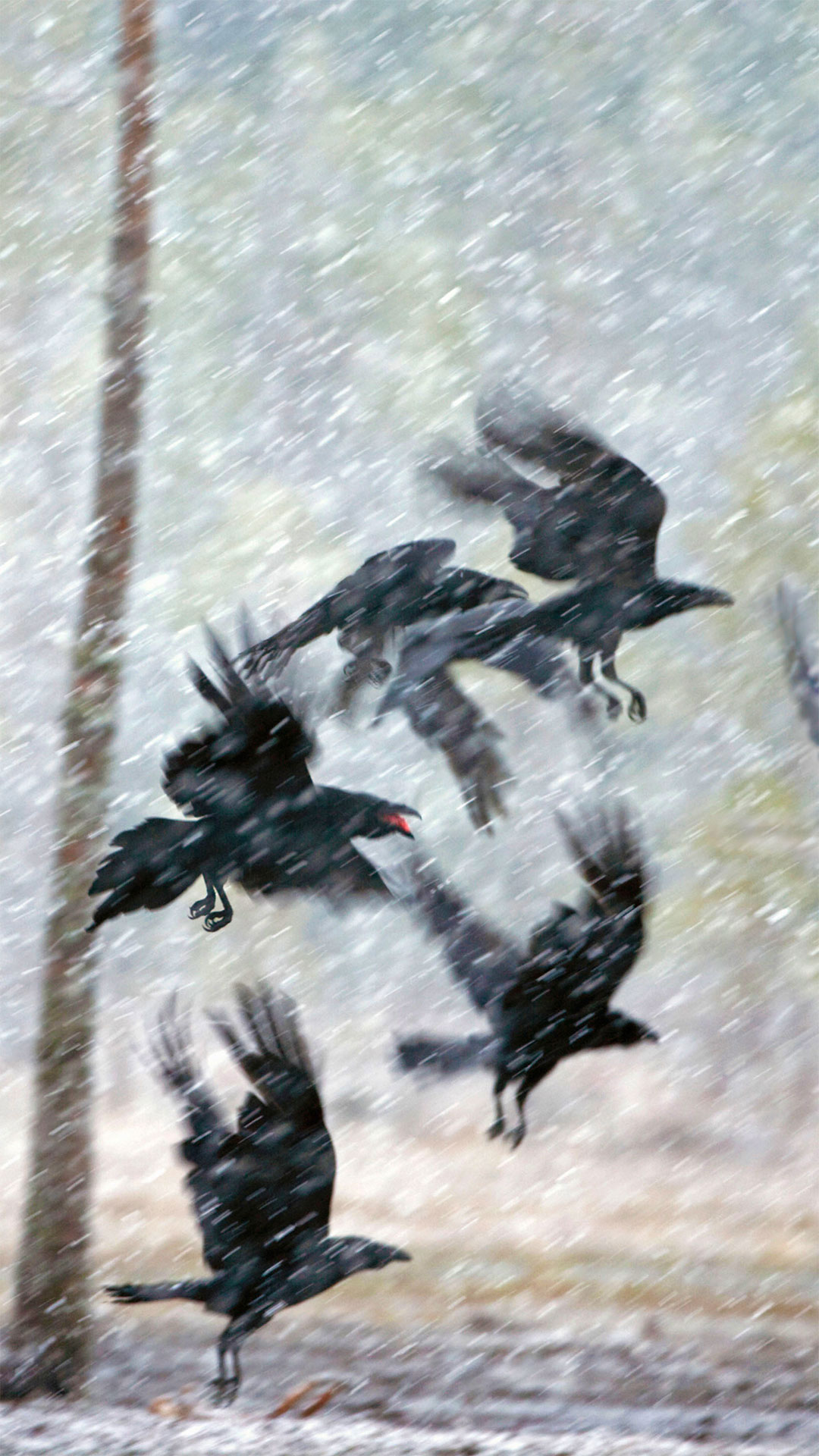 Ravens in a snowstorm near Kuhmo, Finland (© Frans Lemmens/Alamy) - Bing Wallpaper on November 13, 2020