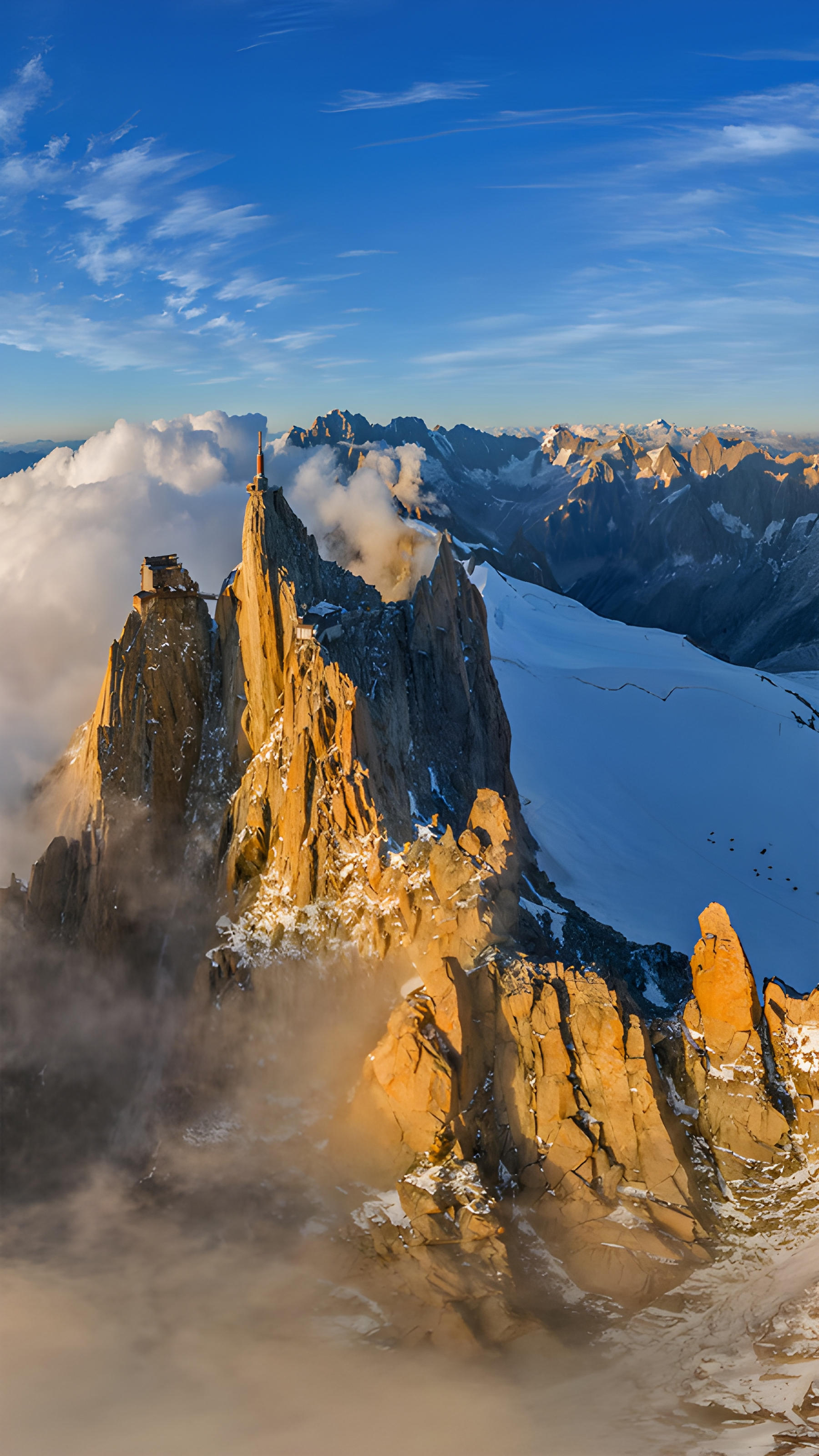Aerial view of the Aiguille du Midi in the Mont Blanc massif, France (© Amazing Aerial Agency/Offset by Shutterstock) - Bing Wallpaper on November 20, 2020