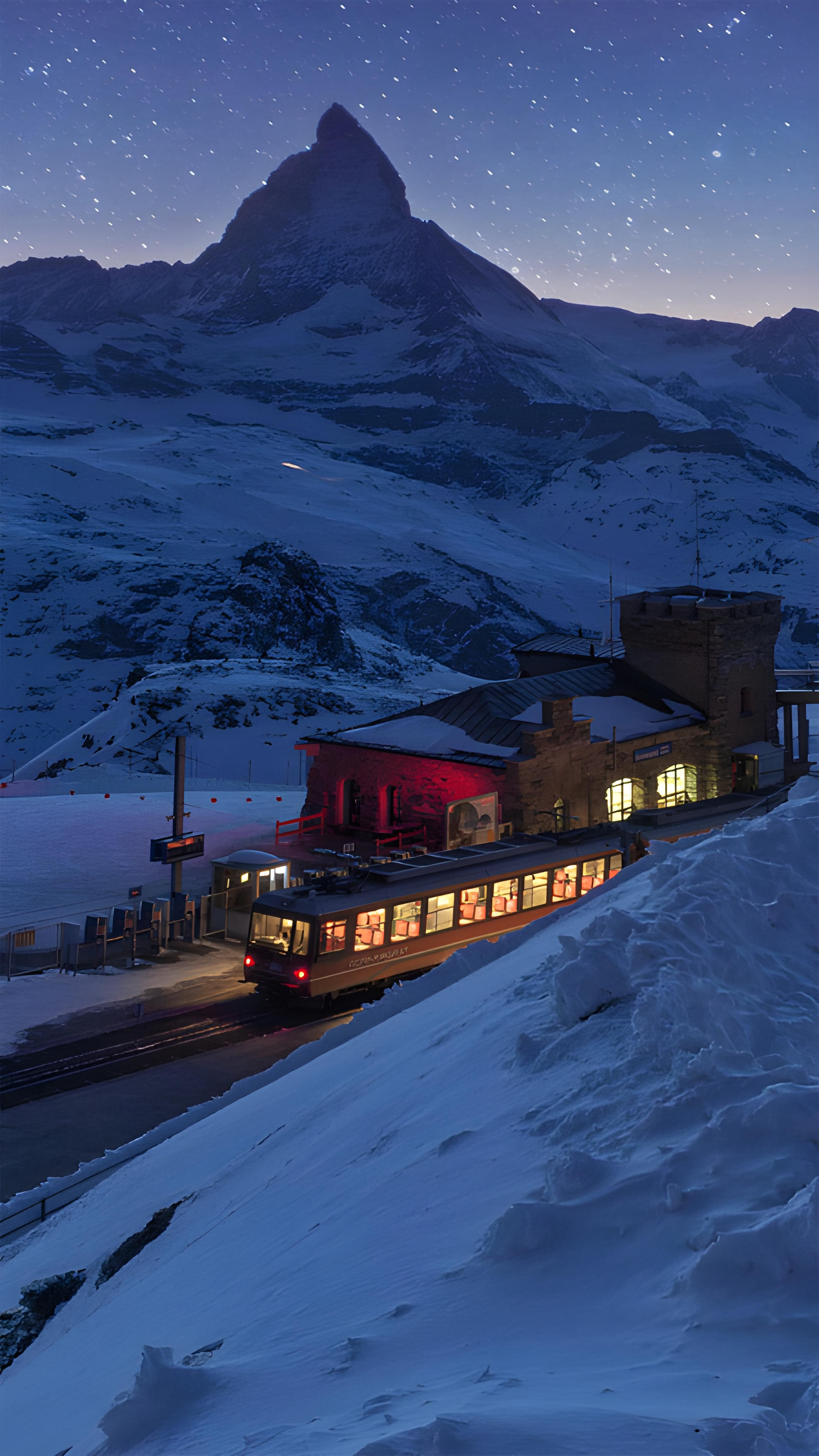 Gornergrat railway station and the Matterhorn in Zermatt, Switzerland (© coolbiere photograph/Getty Images) - Bing Wallpaper on December 13, 2020