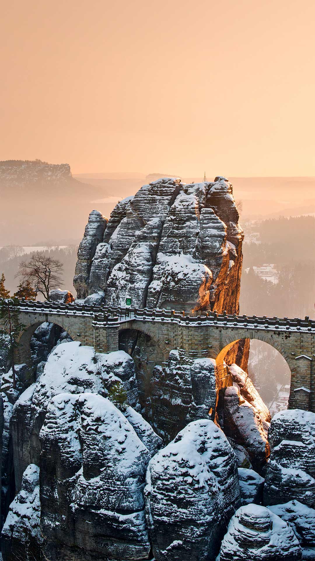Bastei Bridge above the Elbe River in Saxon Switzerland National Park, Germany (© Reinhard Schmid/eStock Photo) - Bing Wallpaper on December 15, 2020