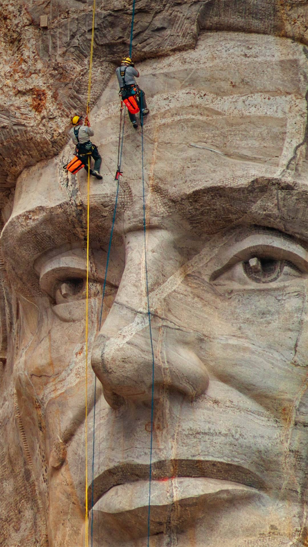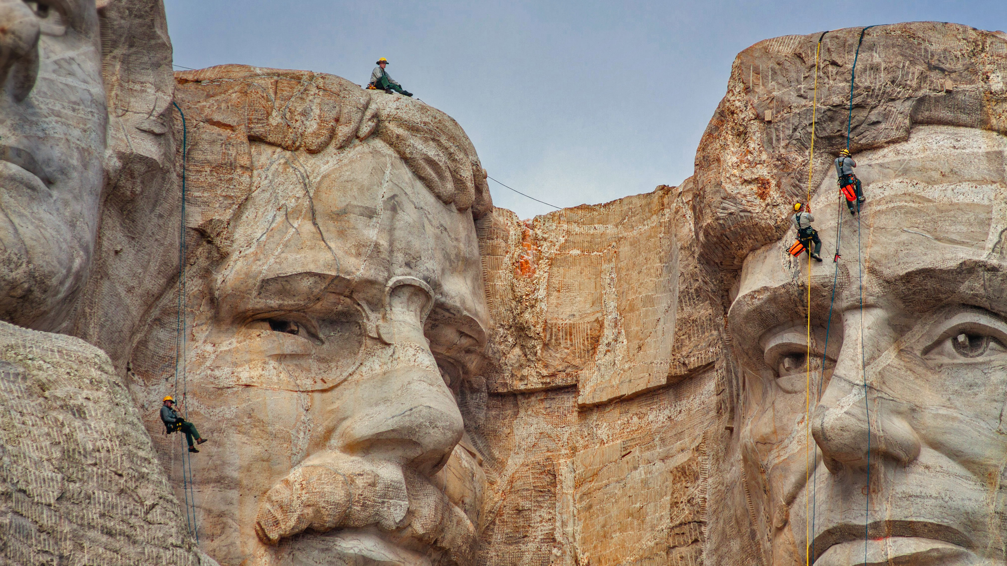 Park service employees inspecting Mount Rushmore National Memorial, South Dakota (© Universal Images Group via Getty Images) - Bing Wallpaper on September 6, 2021