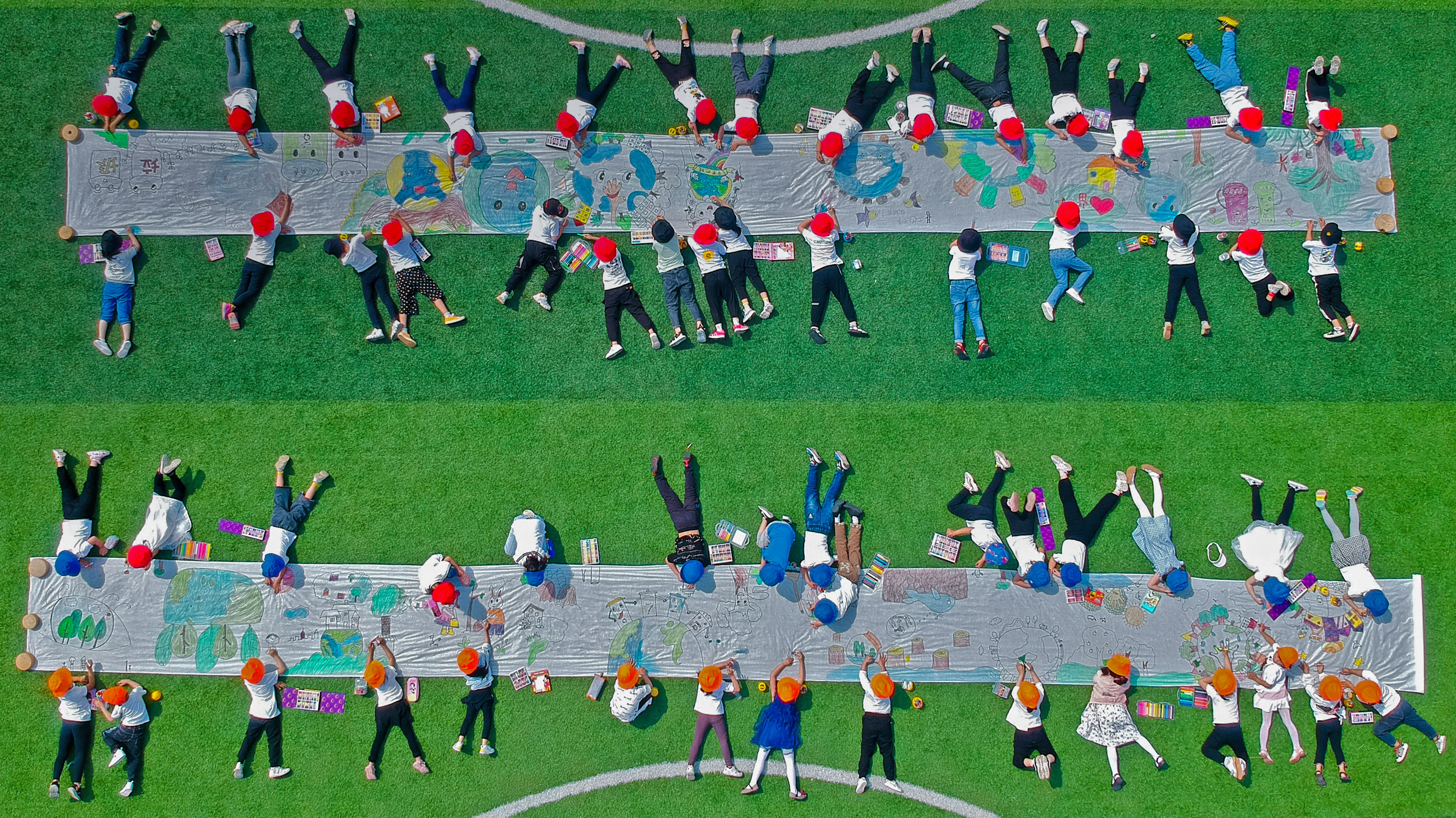 Kindergarteners drawing on canvases in Nantong, Jiangsu province, China (© Xu Hui/VCG via Getty Images) - Bing Wallpaper on October 5, 2021