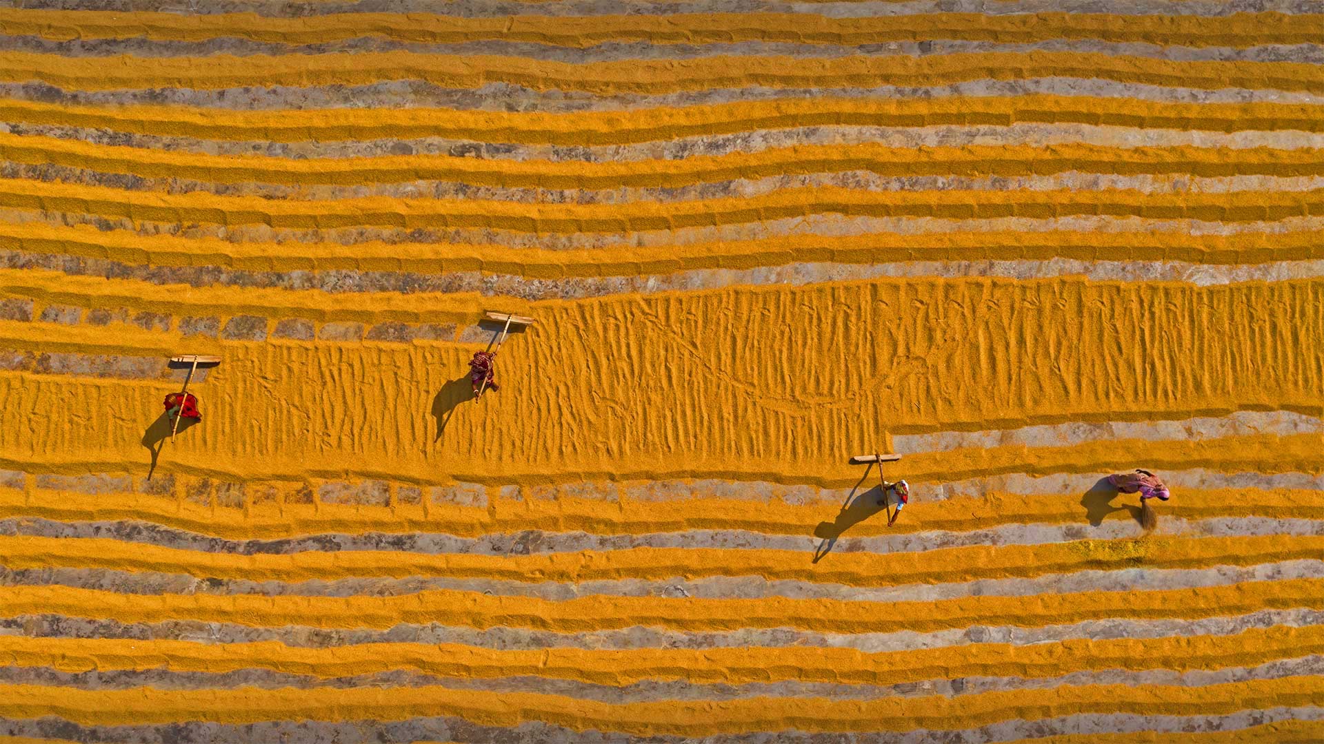 Rice laid out to dry in Dhamrai, Dhaka, Bangladesh (© Amazing Aerial Agency/Offset by Shutterstock) - Bing Wallpaper on January 9, 2022