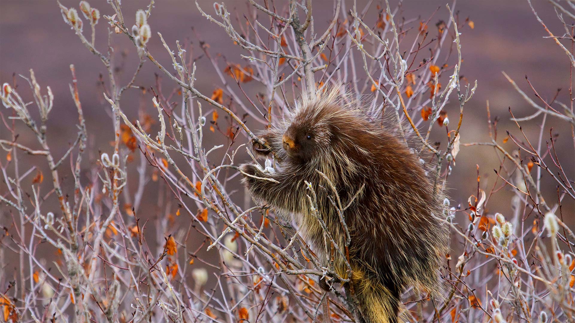 A porcupine hangs on a willow tree branch, Alaska (© Design Pics/Danita Delimont) - Bing Wallpaper on January 11, 2022