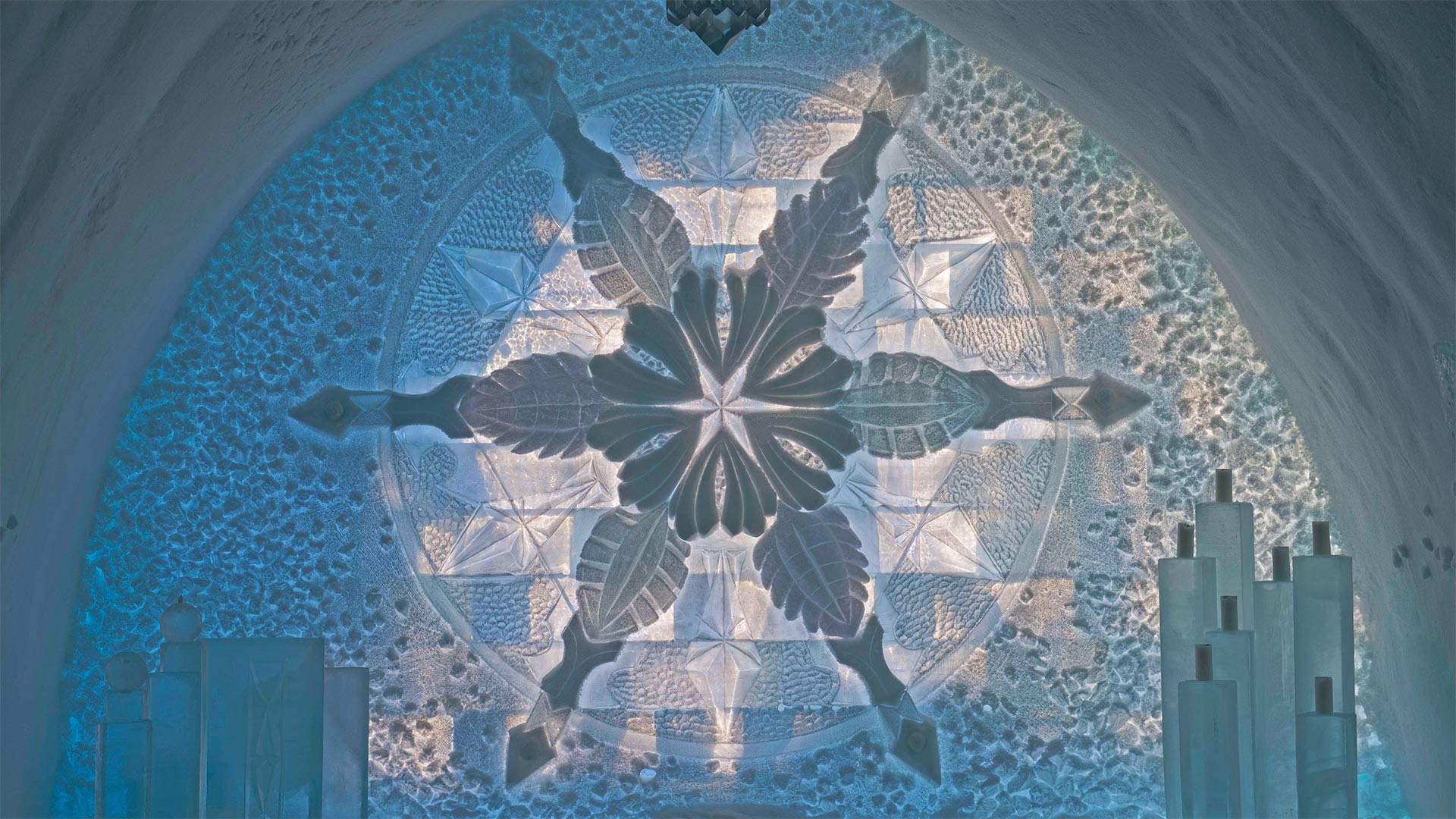 The Ceremony Hall of Icehotel in Jukkasjarvi, Sweden (© Wolfgang Kaehler/LightRocket via Getty Images) - Bing Wallpaper on February 9, 2022