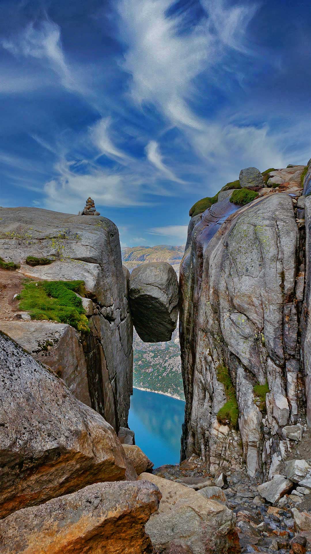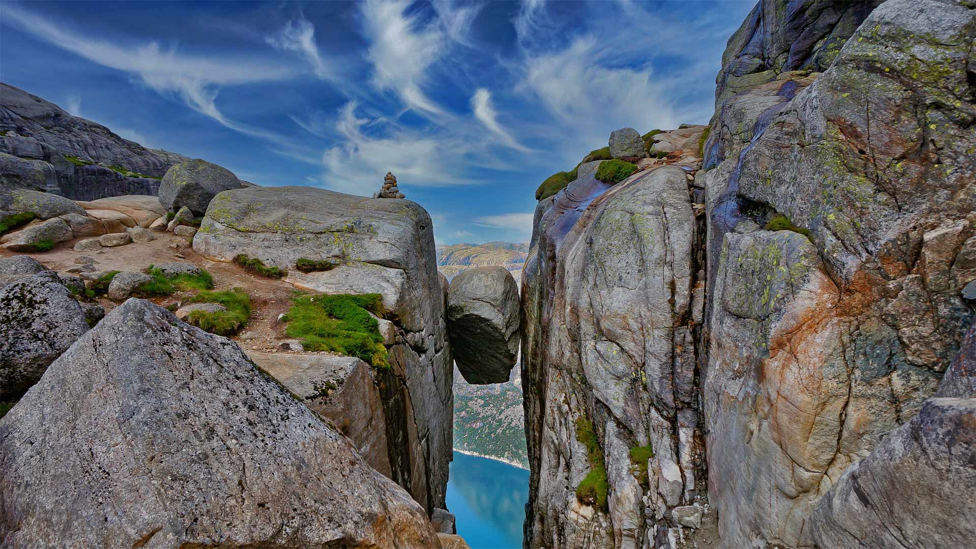 The Kjeragbolten boulder on the mountain Kjerag in Rogaland county, Norway (© Angel FAyE/Getty Images) - Bing Wallpaper on April 4, 2022