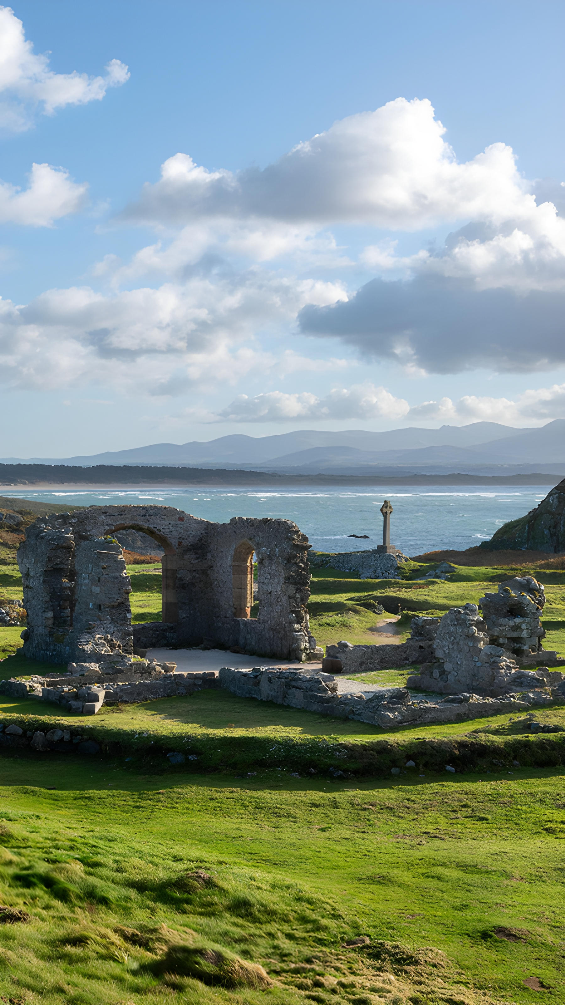 Ruins of St. Dwynwen's Church, Ynys Llanddwyn, Wales (© Photos by R A Kearton/Getty Images) - Bing Wallpaper on January 25, 2024