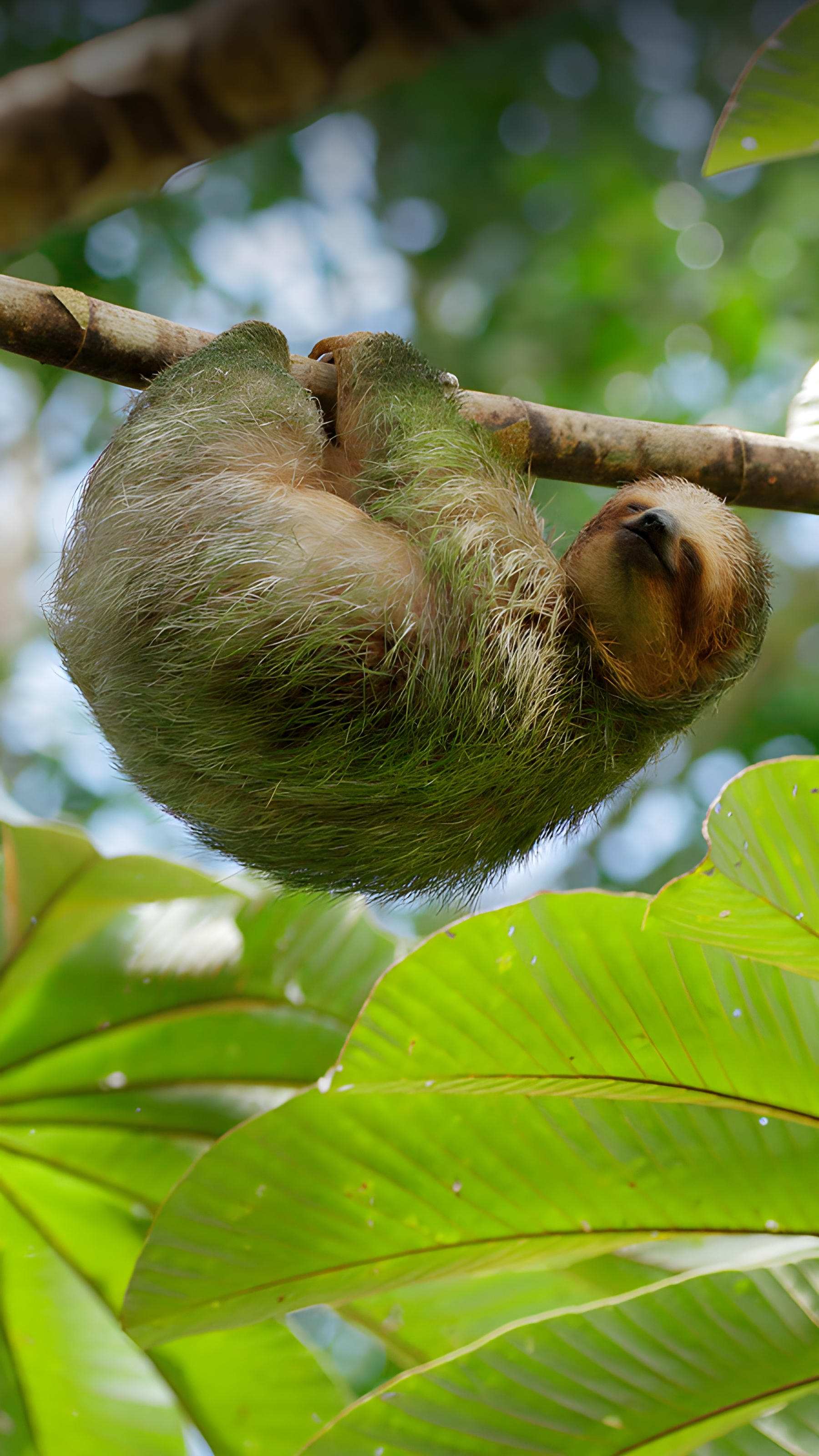 Brown-throated three-toed sloth sleeping in cecropia tree, Costa Rica (© Juan Carlos Vindas/Getty Images) - Bing Wallpaper on March 30, 2024