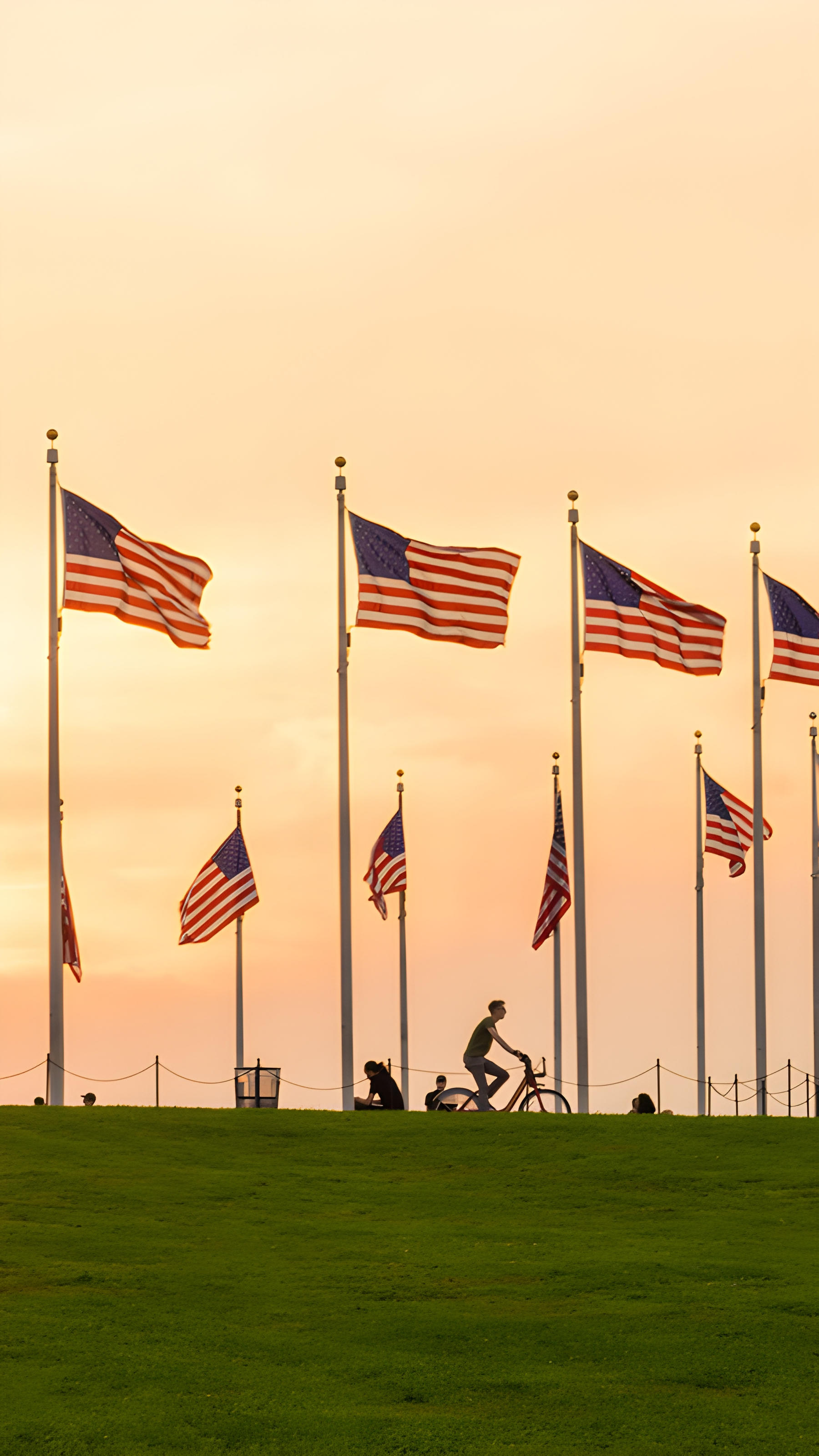 Flag display at the Washington Monument, Washington, DC (© tristanbnz/Adobe Stock) - Bing Wallpaper on June 14, 2024