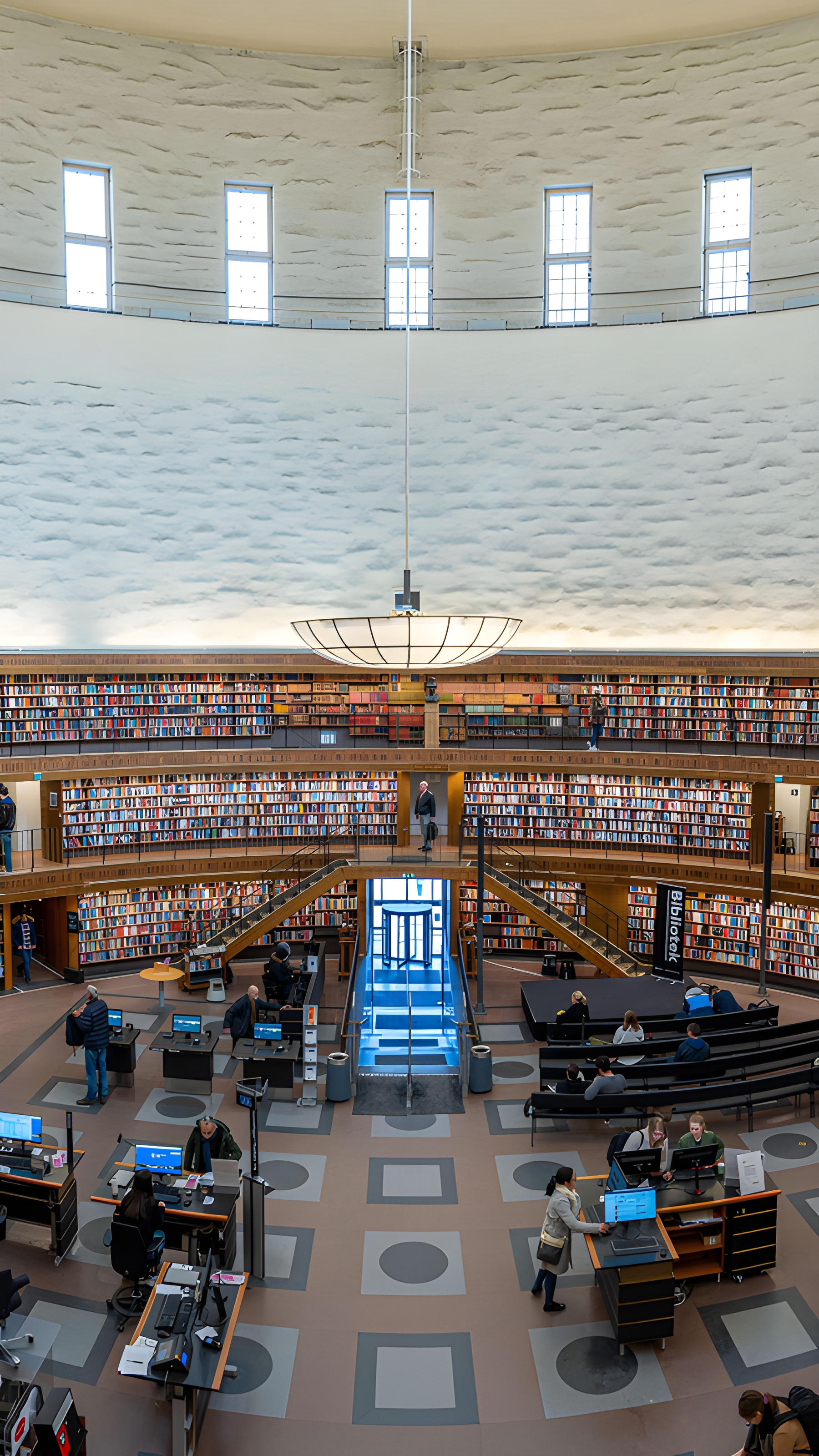 Interior of the Stockholm Public Library, Sweden (© Andrei Hrabun/Alamy) - Bing Wallpaper on September 8, 2024