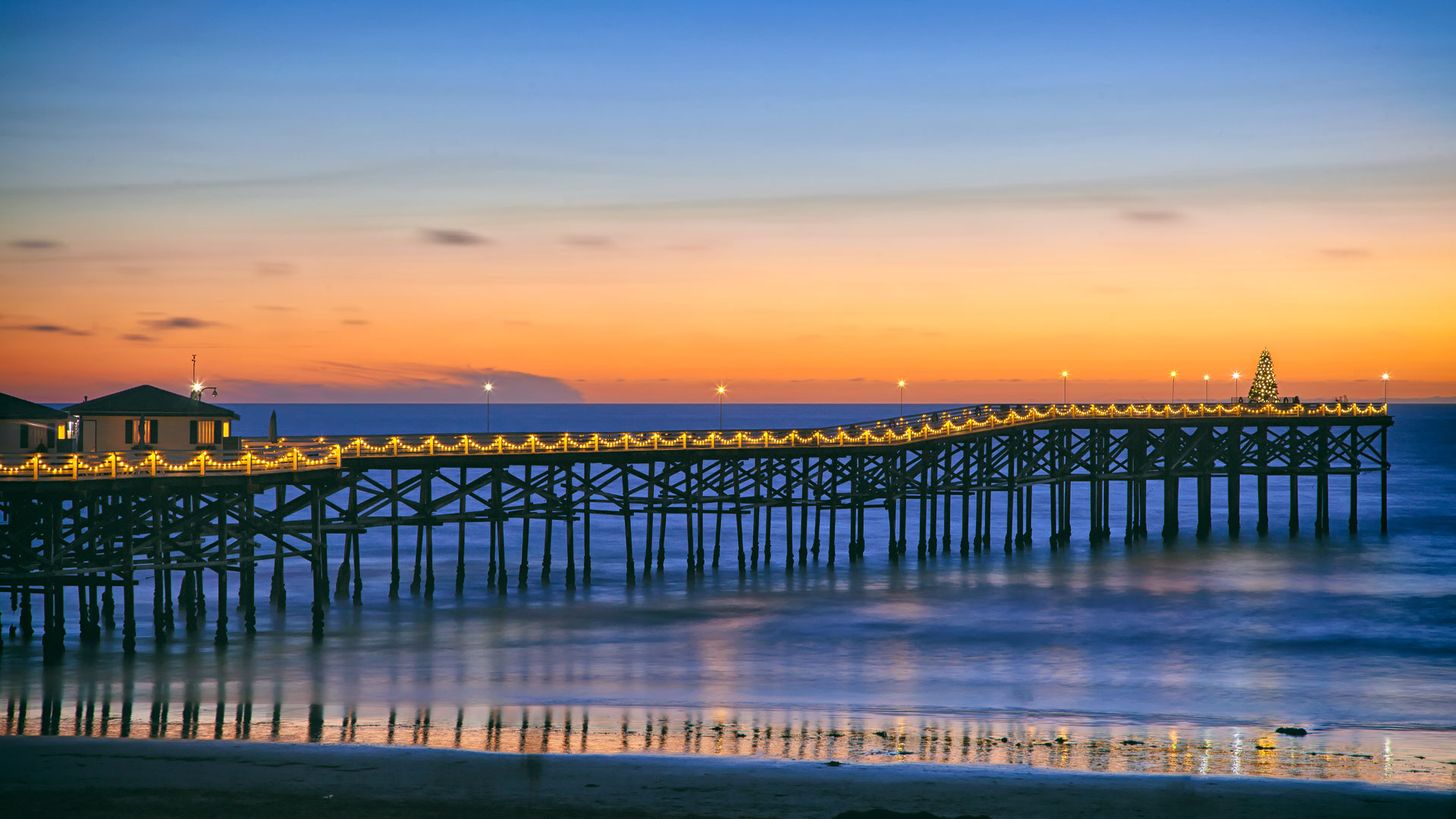 Christmas tree at Crystal Pier, Pacific Beach, San Diego, California (© SamAntonioPhotography/Getty Images) - Bing Wallpaper on December 22, 2024