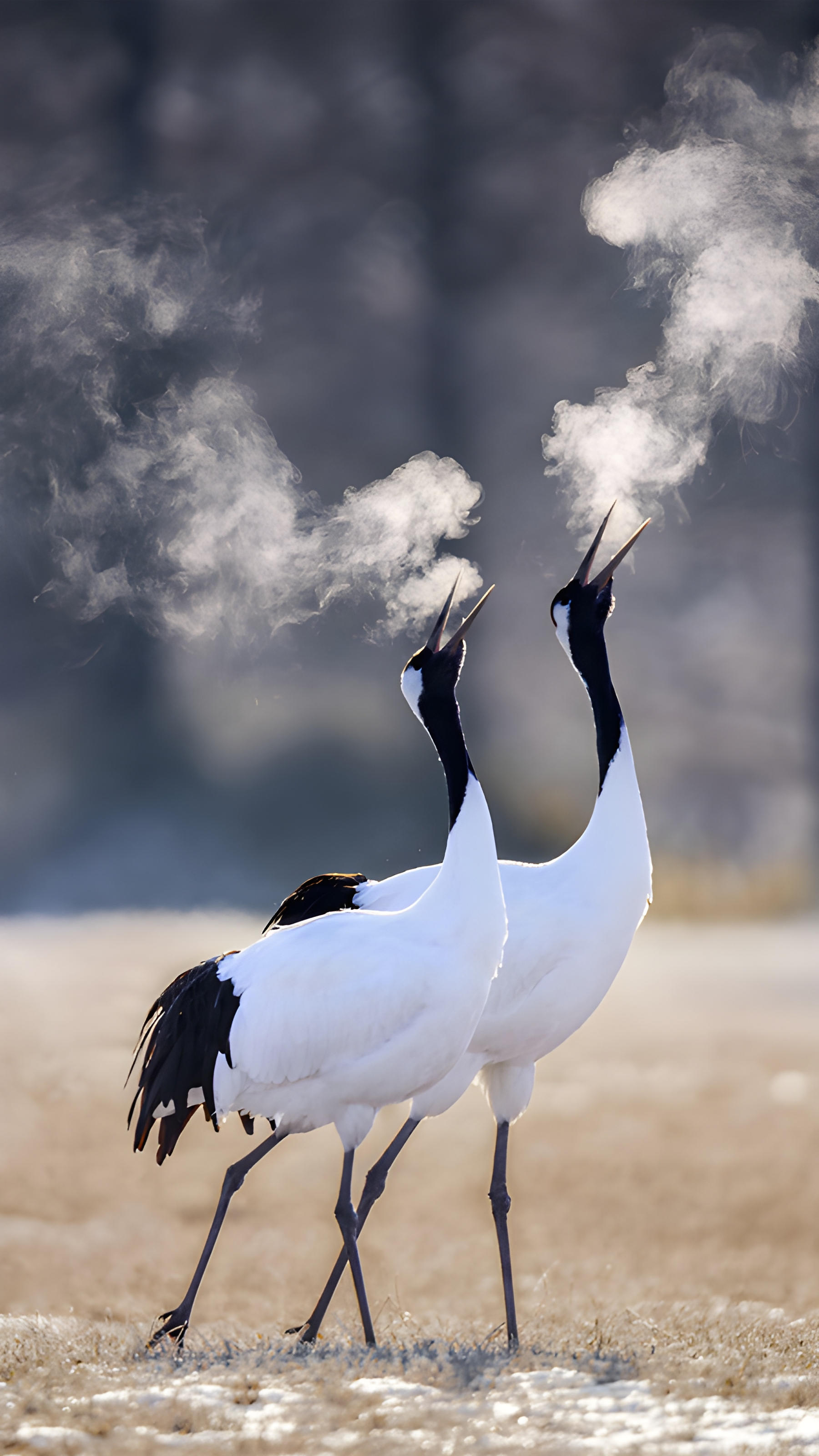 Red-crowned cranes in Kushiro, Hokkaido, Japan (© Wirestock, Inc./Alamy) - Bing Wallpaper on December 23, 2024