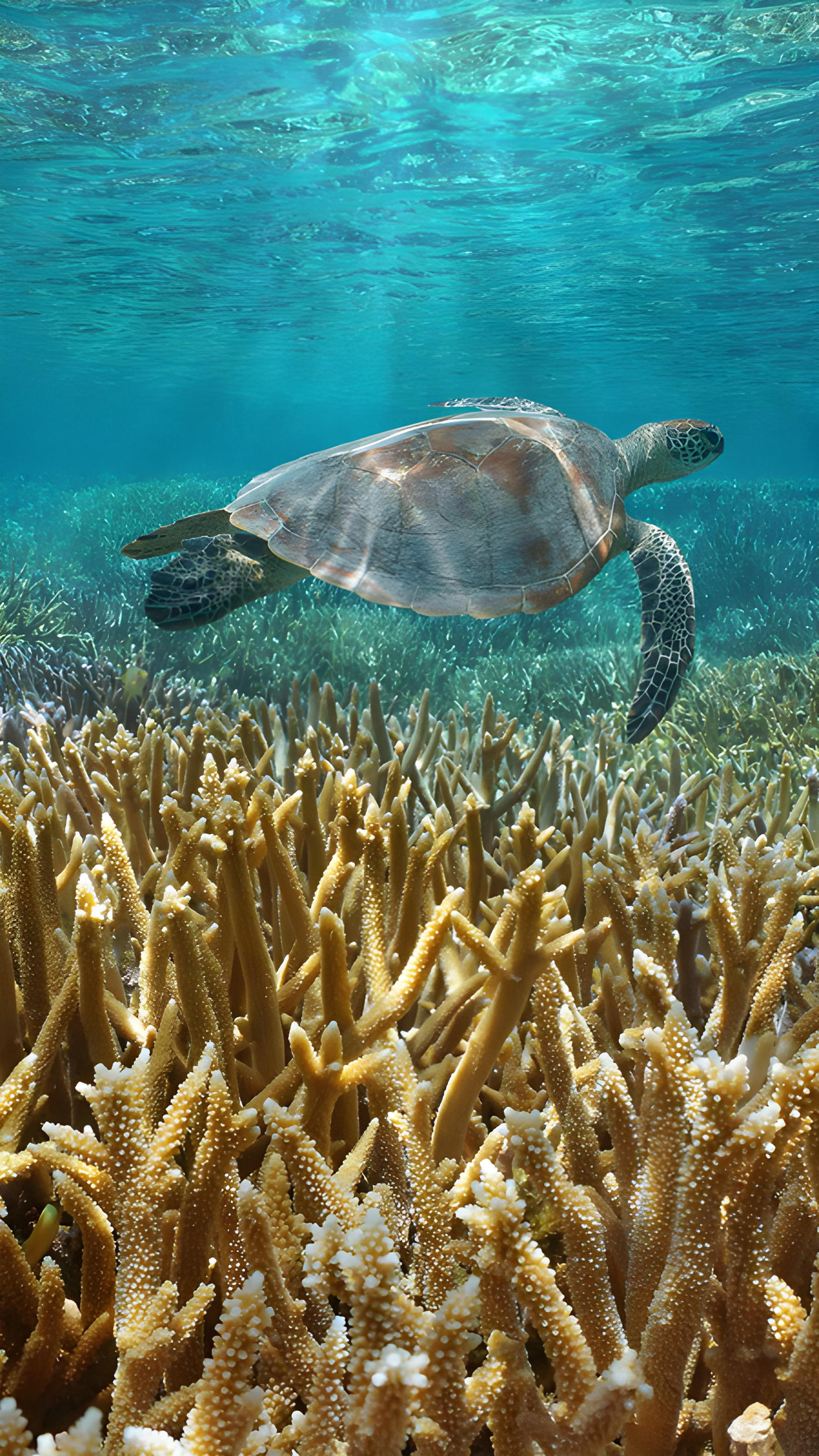A green sea turtle swims in the Pacific Ocean near the French special collectivity of New Caledonia (© Damsea/Shutterstock) - Bing Wallpaper on December 28, 2024