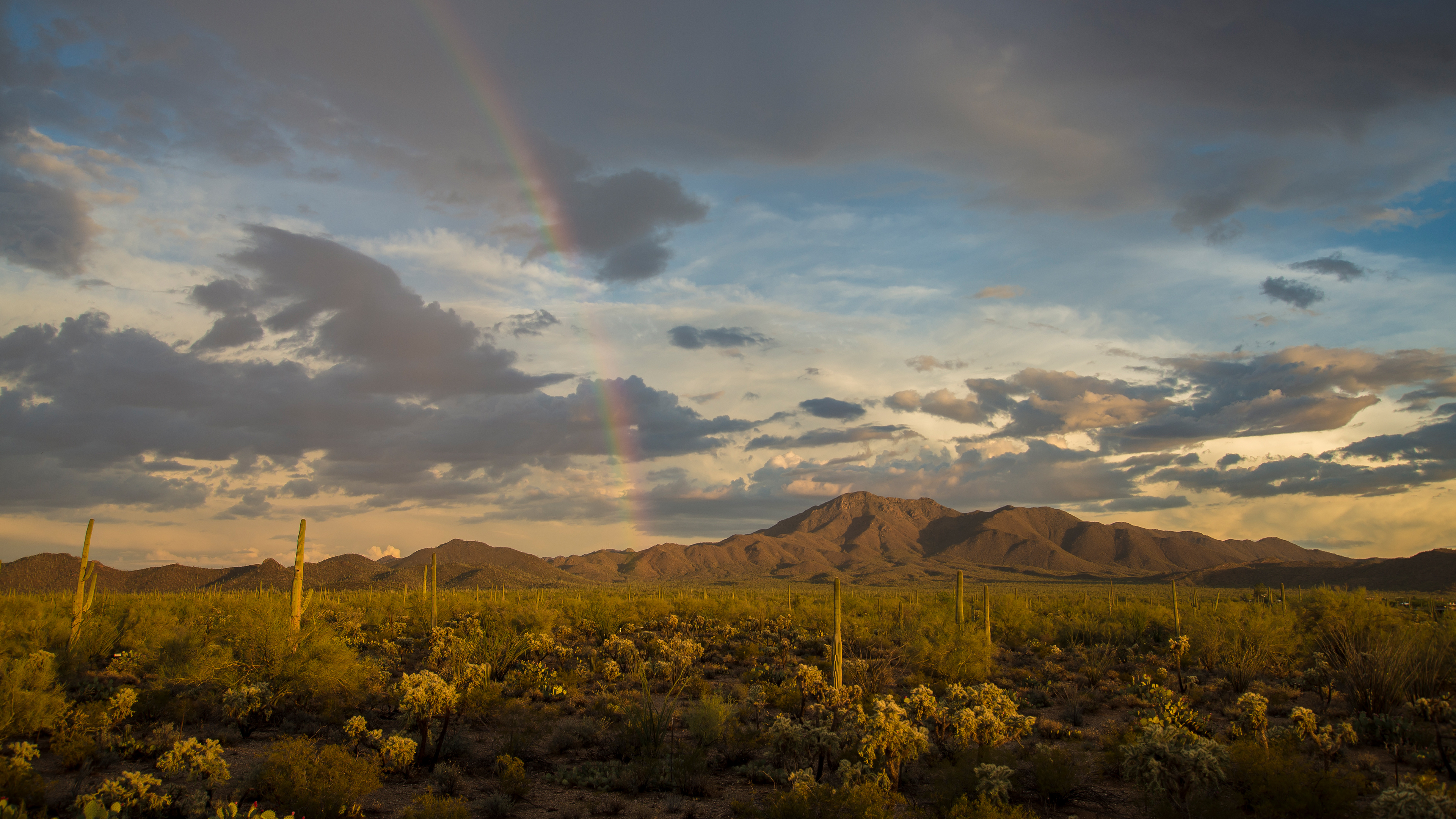 Rainbow over Wasson Peak, Saguaro National Park, Arizona (© Frank Staub/Getty Images) - Bing Wallpaper on April 3, 2025