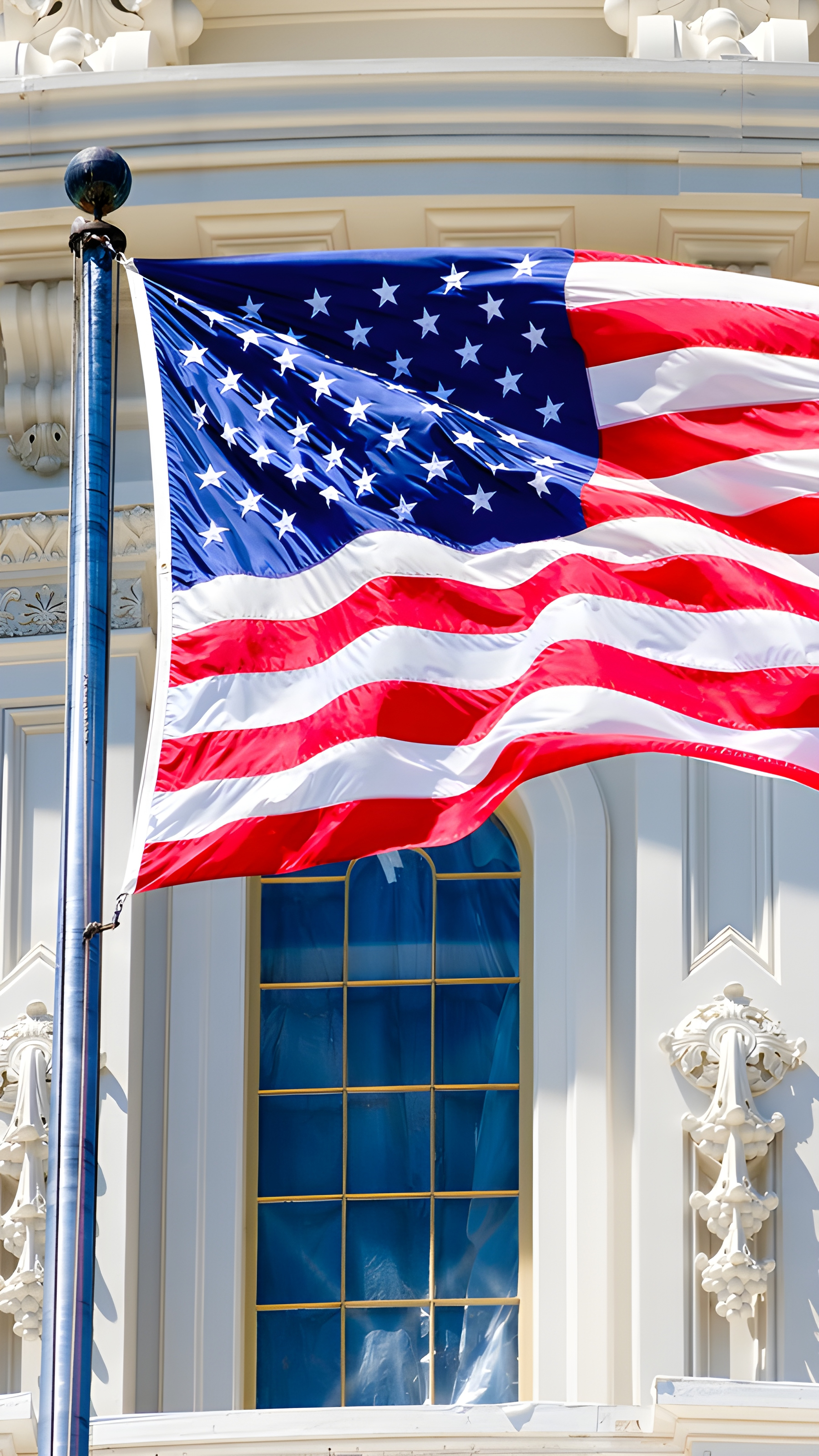 Flag display at the US Capitol, Washington, DC (© kmiragaya/Adobe Stock) - Bing Wallpaper on June 14, 2025