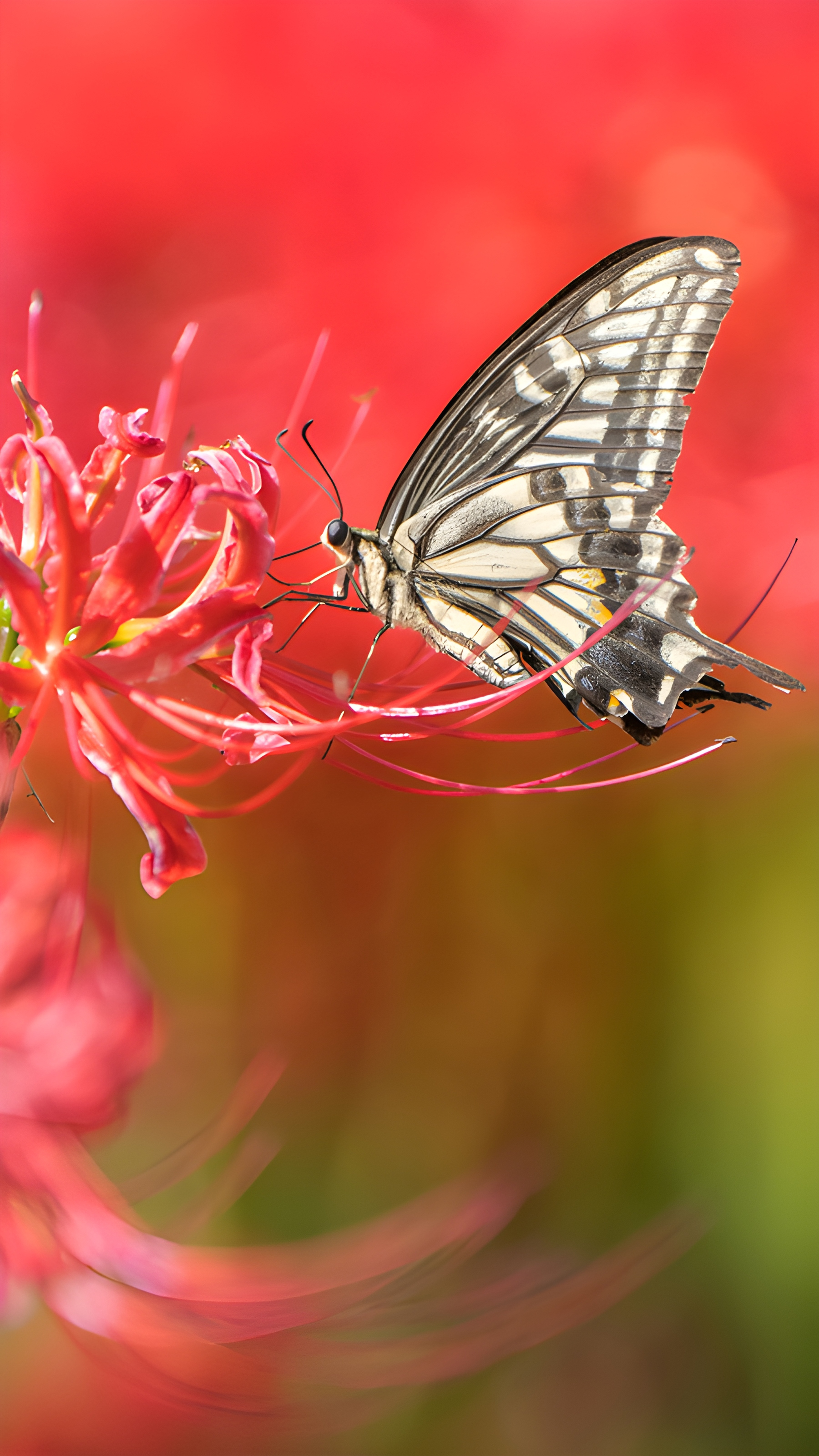Asian swallowtail butterfly on a red spider lily (© lzh/Getty Images) - Bing Wallpaper on June 18, 2025