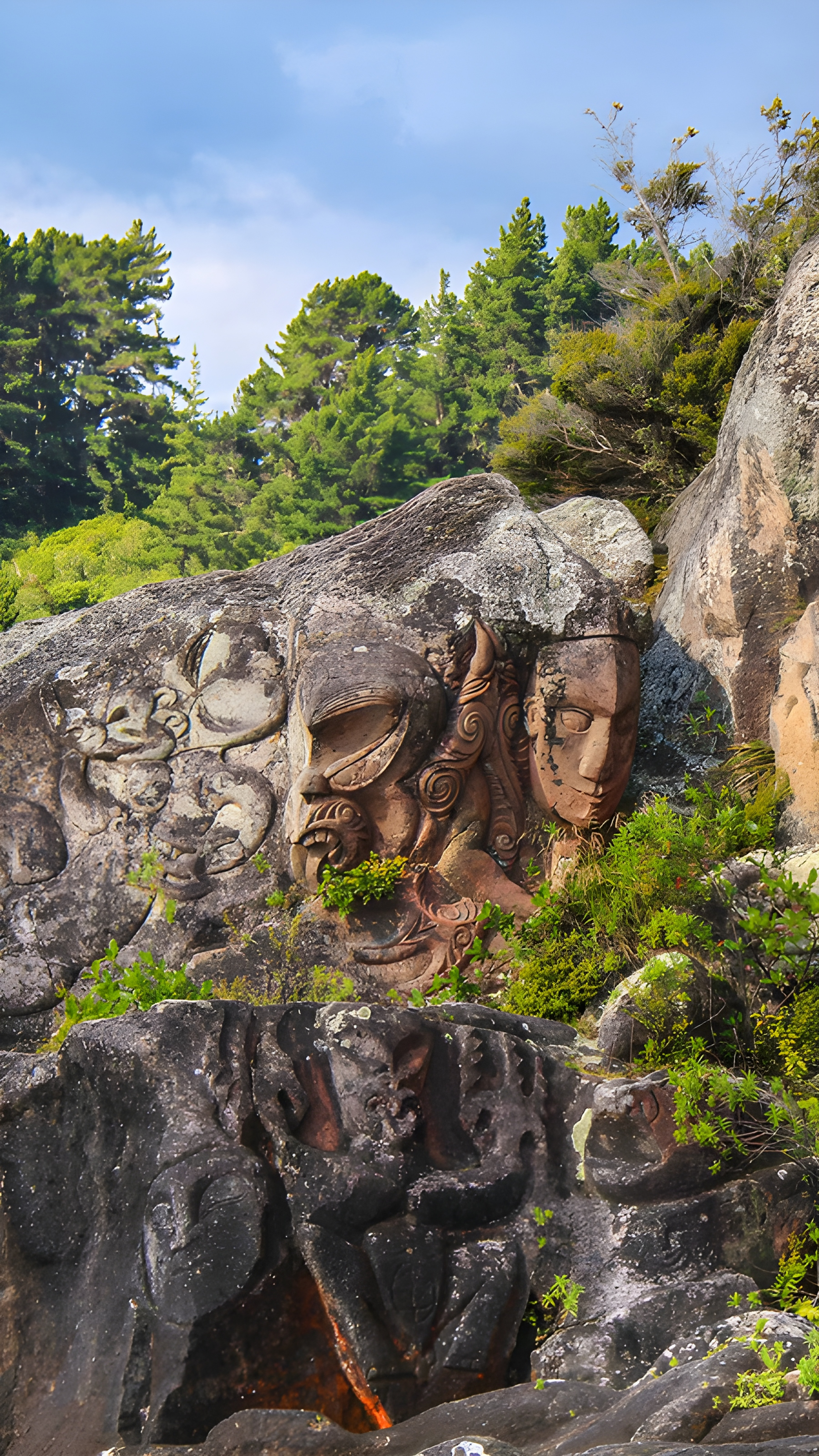Ngātoroirangi Mine Bay Māori Rock Carvings on Lake Taupō, New Zealand (© Joppi/Getty Images) - Bing Wallpaper on August 9, 2025
